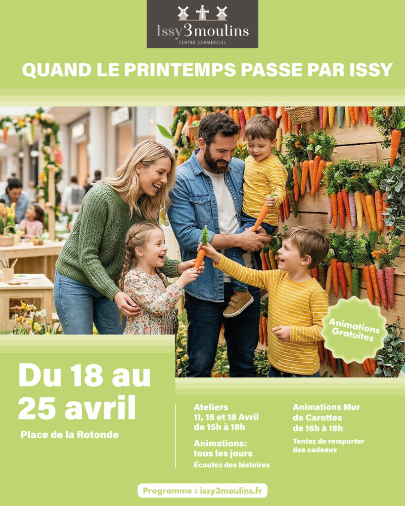 Du 18 au 25 avril, le centre commercial Issy 3 Moulins se met au vert et vous invite à célébrer le retour des beaux jours.